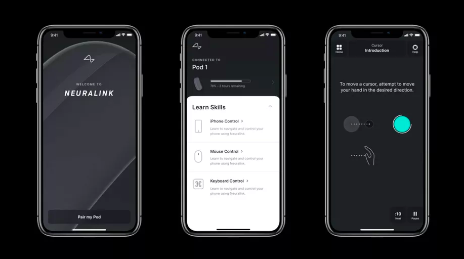 به گفته ایلان ماسک نورالینک به میمون ها توانایی اجرای ذهنی بازی های ویدیویی را می دهد و در مدتی بعدتر میمونی را که با ایمپلنت مغزی نیورالینک، بازی کامپیوتری می کند، به نمایش گذاشت.